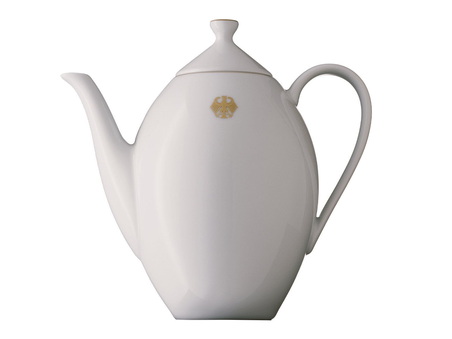 Das Porzellan im Bundeskanzleramt muss man nicht umdrehen, um die Marke des Herstellers auf der Unterseite zu entdecken – das Geschirr mit dem goldenen Rand und der Vignette des Bundesadlers darf nur Arzberg herstellen: Ende der sechziger Jahre stattet der fränkische Porzellanfabrikant das Bundeskanzleramt mit einer Sonderedition der Form 2000 von Heinrich Löffelhardt aus. Zum 100. Geburtstag Löffelhardts wird das Bundeskanzleramt mit exklusiv sonderangefertigtem Geschirr und neuen Artikeln beliefert. Das war 2001.